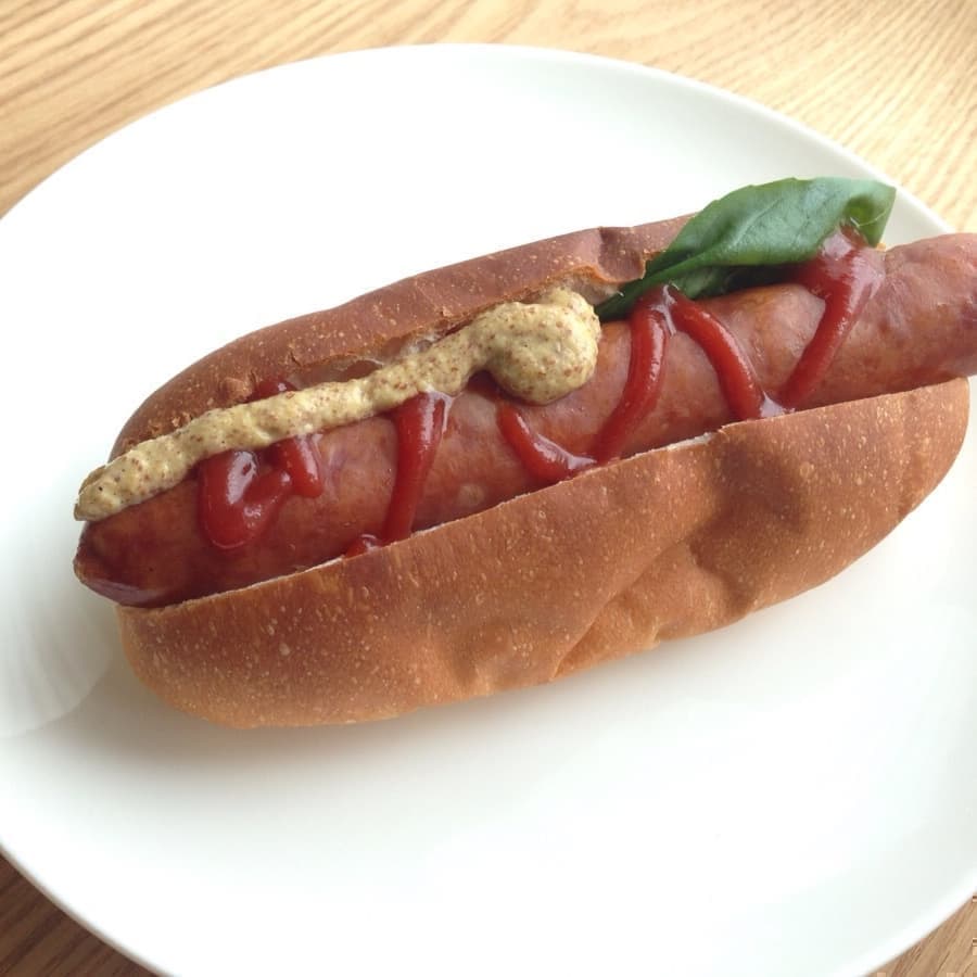 地元片山津”ヒラクベーカリー”さんのパンに、ジューシーな富山放牧豚ブランド"悠牧豚"のソーセージを挟みました。